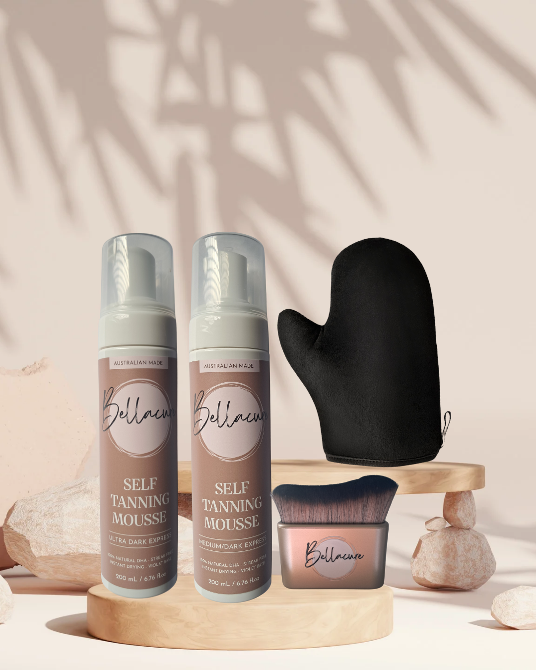 We are so excited to share Bellacure Self Tanning Mousse range with you - Our self tanning mousse is organic, unscented, contains no nasties, 100% natural DHA and loaded with skin loving ingredients your skin will thank you for. Just a natural looking hydrated streak free tan every time